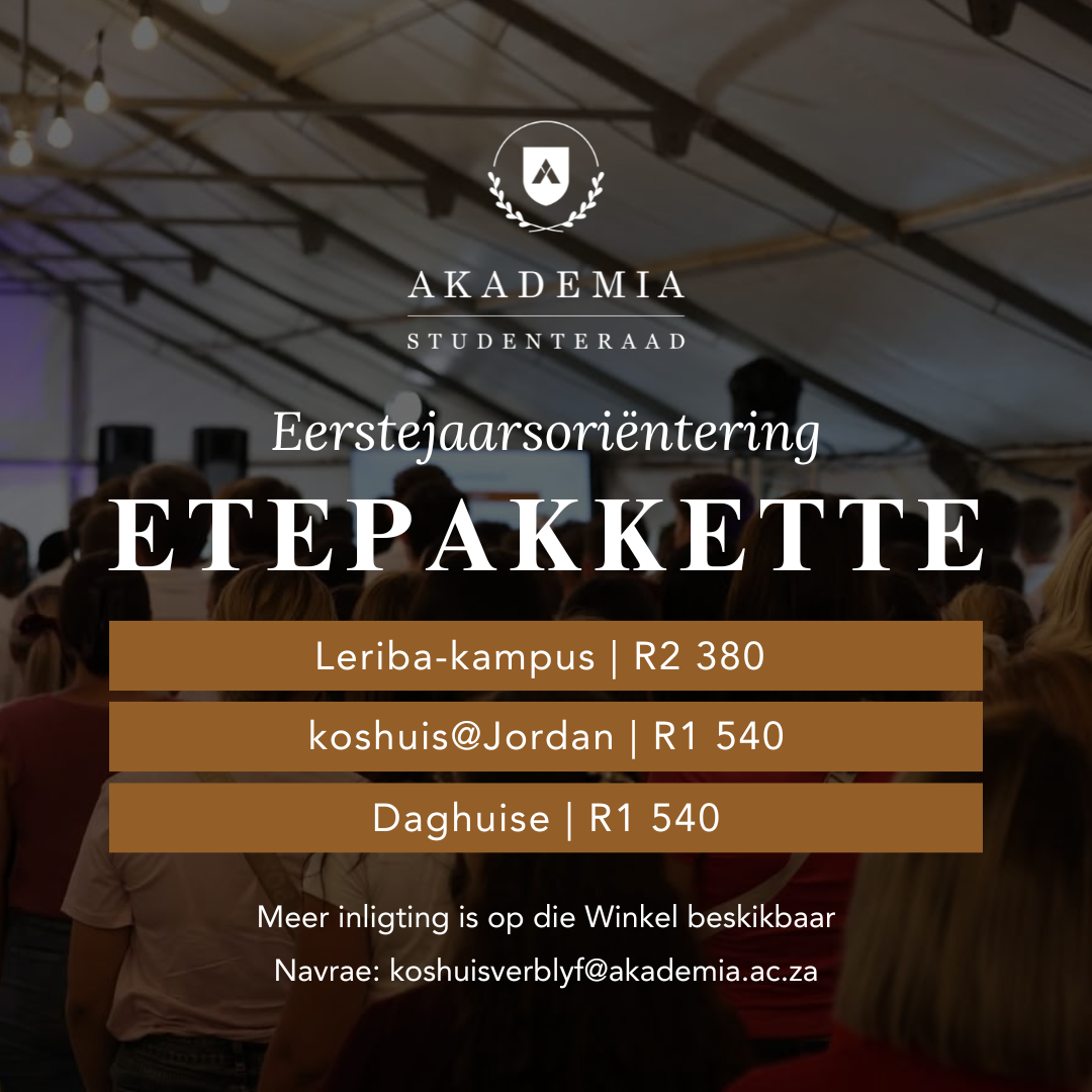 Vir enige navrae, stuur gerus ’n e-pos na koshuisverblyf@akademia.ac.za.